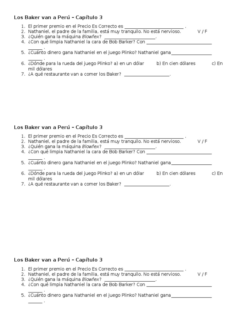 100 100 found this document not useful Mark this document as not useful. Level 3 and up. Web Up to 3 cash back Los Baker van a Peru-Chapter 3 by victorvela.